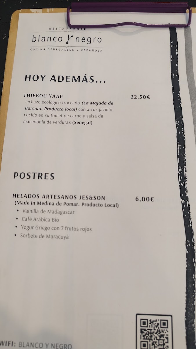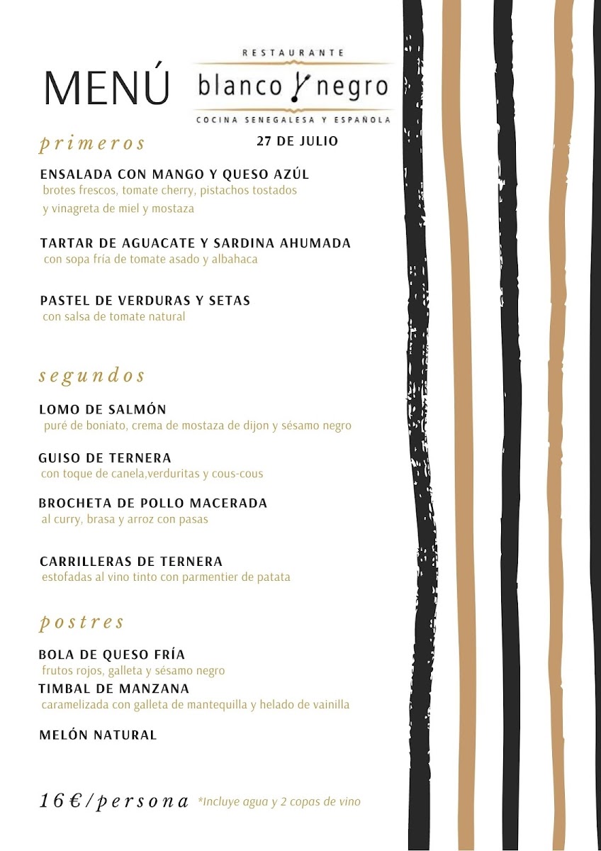 Restaurante Blanco y Negro Menu